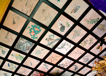 また、天井の下で手をたたき合わせるとまるで龍が鳴いたように音が共鳴することから、鳴天井と言われております。鳴き声は心の清らかな人にしか聞こえないといわれ、多くの人々に親しまれております。